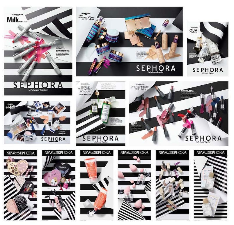 I codici di marca sono elementi visivi, come le strisce bianche e nere di Sephora…